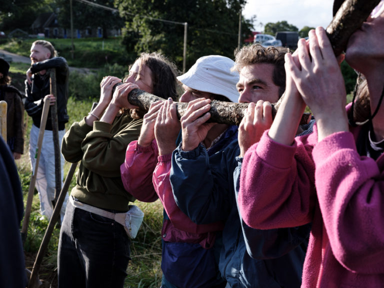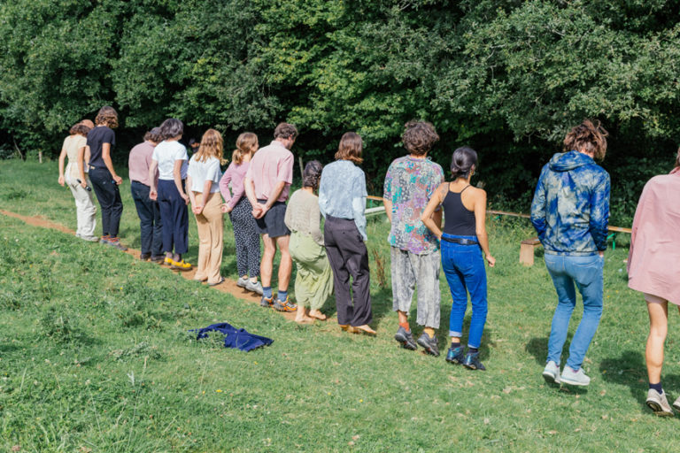 Quelques jours avant le festival, les artistes sont invités à venir travailler sur place. Au rythme des conversations et des repas partagés, des zones de réflexion et des temps d’action se définissent naturellement. Les propositions des artistes s’adaptent, s’écrivent ou se réécrivent complètement.
