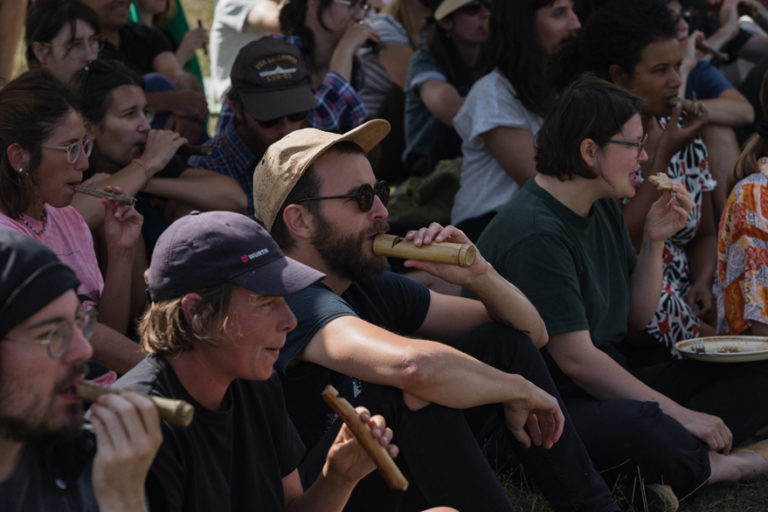 Durant cette semaine, l’équipe, les bénévoles et les artistes vivent, campent, mangent et travaillent ensemble à l’élaboration du festival.